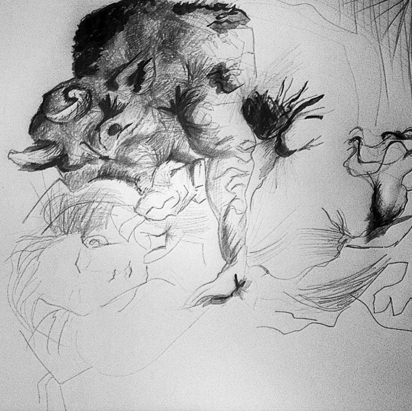 As I sat watching Blanca sleep, sculpture-perfect, I closed my eyes, fell into a microsleep, and was able to see into her dreams... dots and lines running into absurd shapes, like silvery jelly. I sat there a while, watching these shapes, until they formed the head of a bull, a white bull, close, sad, almost kind. Behind the bull were a series of concentric rings that orbited the two of them, girl and bull. I realised then that we, or they, were inside a bullring, a dark, silent one; but it didn’t look like a bullring exactly because you couldn’t see the structure: the rings multiplied and multiplied, into nothingness. Is it a funny thing to say that I recognised him; that he seemed to have the same... what am I saying, personality? I don’t know what you’d call it, maybe spirit? I knew it was him because of the smell, which maybe I haven’t mentioned but it accompanies the bull dreams and is what I now know to be the perfume of a moonflower. The flowers themselves are like miniature twisted bedsheets, if you don’t know, and at night they smell a bit like orange blossom. She dangled a hand over his eyeball then, and watched it disappear into his breath. You can dream in me, she said, in the dream. And then, something strange happens: I am shut out, in the way I used to be when she went to sleep inside the dream, as if the dark, impenetrable part of the dreamscape had spread, and I was only able to teeter on the edge of the abyss. That was disappointing. I was thinking about the potential and limitations of her being able to ‘lock me out’, as I stared again into black, aware only of the sound of her breath, staccato, and of a strange feeling of pleasure that became more intense, a bruised blue piquant storm. I had sometimes experienced this pleasure, over the past couple of years, and was confused by it, knowing it not to be my own, in the syrupy tipping point between being sleep and awake that I know all too well. But then a voice sliced through this pleasurable feeling, and everything stopped.